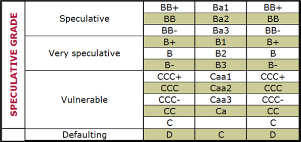 Non-investment grade, or speculative, ratings suggest a higher risk of default, with the potential for greater returns compensating for the elevated risk: